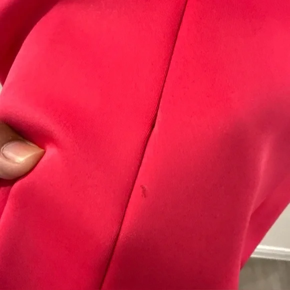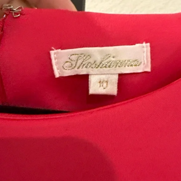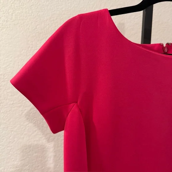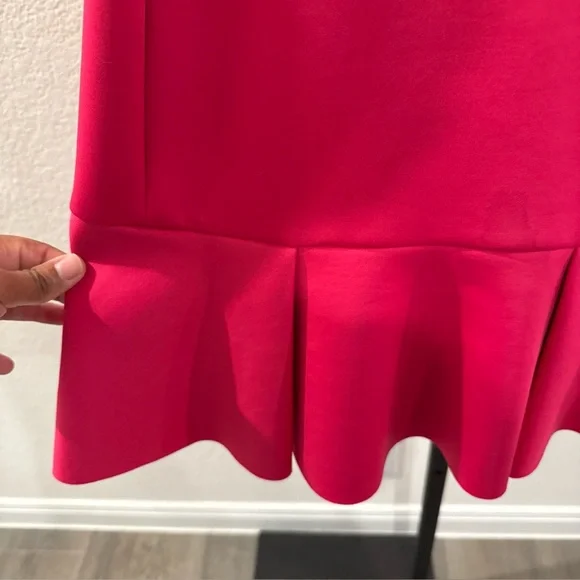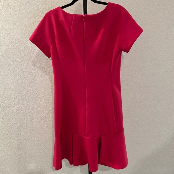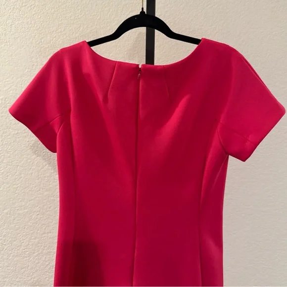This is a stylish Shoshanna midi dress for women in a vibrant fuchsia color. The dress features short sleeves, a zip closure, and is made of polyester material. It is a size 10, designed in a regular fit for women. The dress falls at a midi length, making it a versatile option for various occasions. Perfect for those who want to make a statement with a bold and feminine dress.Condition: Preowned. In great condition. Does have a pink mark on back by zipper. Pictured and reflected in price.